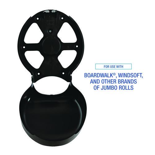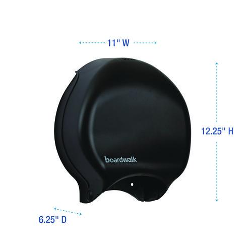 Attractive, user-friendly, single roll, toilet tissue dispenser is a great choice for public restrooms. The jumbo roll compatible size ensures patrons have toilet tissue when they need it with minimal maintenance. Designed to hold one jumbo roll, compatible with Boardwalk®, Windsoft®, and other brands of toilet paper. The dispenser provides easy access to paper and multi-directional tearing for easy use. Sleek and modern design seamlessly fits into nearly any restroom décor.