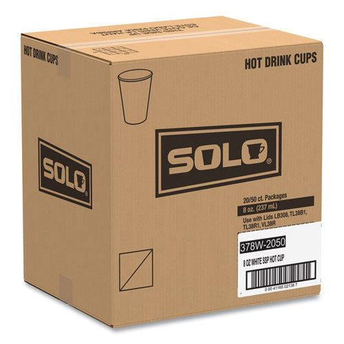 Single-Sided Poly Paper Hot Cups, 8 oz, White, 50/Bag, 20 Bags/Carton