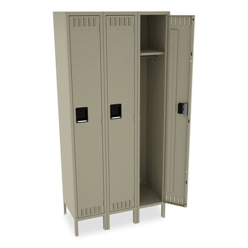 Single-Tier Locker with Legs, Three Lockers with Hat Shelves and Coat Rods, 36w x 18d x 78h, Sand