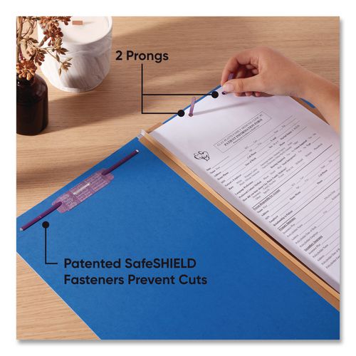 Protect your documents and fingers with Smead™ patented SafeSHIELD® Coated Fastener Technology; the ultimate solution to fastener issues, including paper tears, finger cuts and excessive fastener crinkling. Use colors to signal category or type of project at a glance. Sturdy tear resistant gusset expands to hold up to 2" of material. Two dividers provide six filing surfaces for ultimate organization.