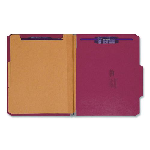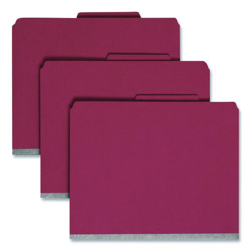 Six-Section Pressboard Top Tab Classification Folders, Six SafeSHIELD Fasteners, 2 Dividers, Letter Size, Bright Red, 10/Box