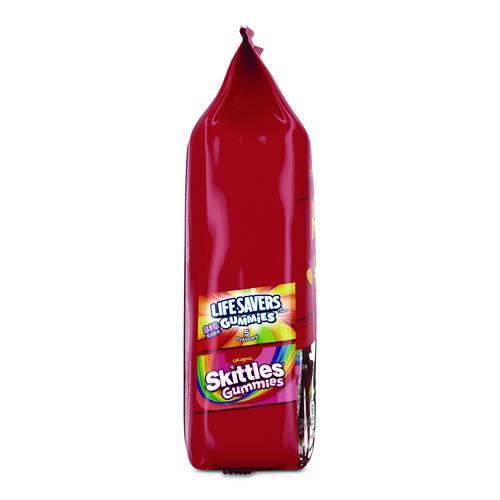 Can't choose between chewy or gummy candy? Now you don't have to with this Mars Skittles, Skittles Gummies, and Life Savers gummies party-size variety bag full of mouth-watering fruity candy. Make celebrations extra-sweet by filling your candy buffets, party favors, and pinatas with individually wrapped gummy and chewy fruit-flavored candy. Guests will be smiling ear to ear thanks to this yummy fruit-flavored assortment. Are you in charge of office snacks? Increase team morale by filling up the office candy dish with this bulk bag of candy. Eliminate those afternoon slumps and let Skittles and Life Savers turn those frowns upside down.Note: This is a non-returnable item.