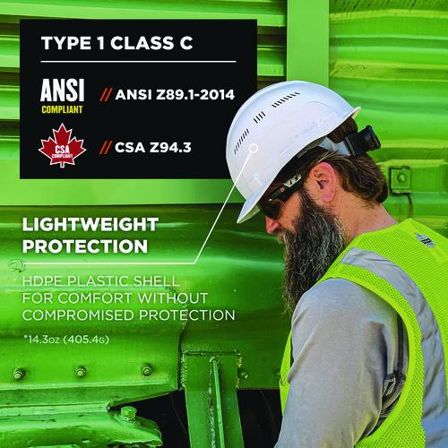 Skullerz 8966 Class C Lightweight Cap-Style Hard Hat, Adjustable Venting, 6-Point Rachet Suspension, White