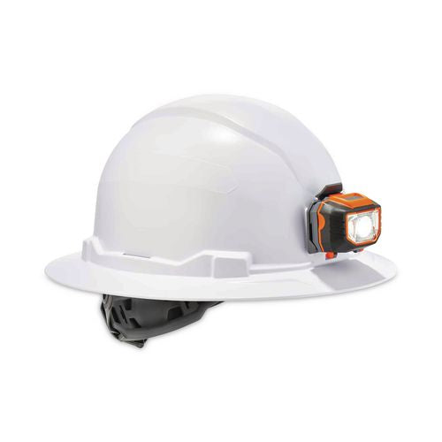 The Skullerz 8971 Class E Full Brim Hard Hat and LED Light is heavy-duty, yet lightweight and comfortable head protection built to protect the top of the head from falling objects or bumping into stationary objects. A padded, moisture-wicking and odor-resistant sweatband and top pad lines the sides, forehead and top interior and is removable for easy replacement. This cap-style hard hat can be worn backwards to improve upward visibility or forward to keep sun and rain away from the eyes. This safety helmet fits hat sizes 6.5 to 8 (21 in to 25 in). Customize the size with the easy-to-adjust 4-point premium ratcheting suspension. Simply turn the one-handed adjustment knob to tighten or loosen the fit without having to take the hard hat off. Built with weight distribution in mind, this hard hat's snug fit balances perfectly on the head and doesn't slip off.Package Includes: LED LightNote: This is a non-returnable item.