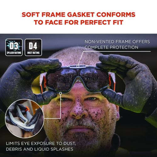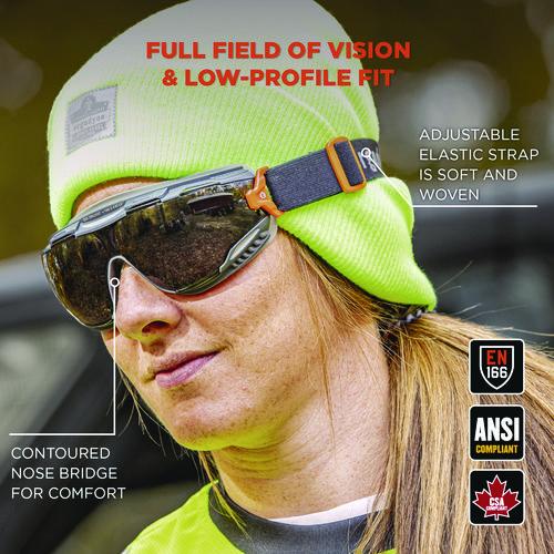 The Skullerz ARKYN Anti-Scratch and Enhanced Anti-Fog Safety Goggles are low-profile and lightweight in design with a wrap-around lens for a wide field of vision. These protective safety goggles feature tough anti-scratch and anti-fog polycarbonate lenses to provide a clear vision and protect eyes from flying dust, particles, droplets and splashes in tough work environments. The soft gasket lining forms to the wearer's face for a comfortable, customized fit while sealing out dust, debris and liquid splashes. The soft, woven elastic strap is adjustable and comfortably secures on heads, hard hats or caps. Hand wash with mild soap, water and Skullerz 3216 Microfiber Cleaning Cloth (sold separately).Note: This is a non-returnable item.
