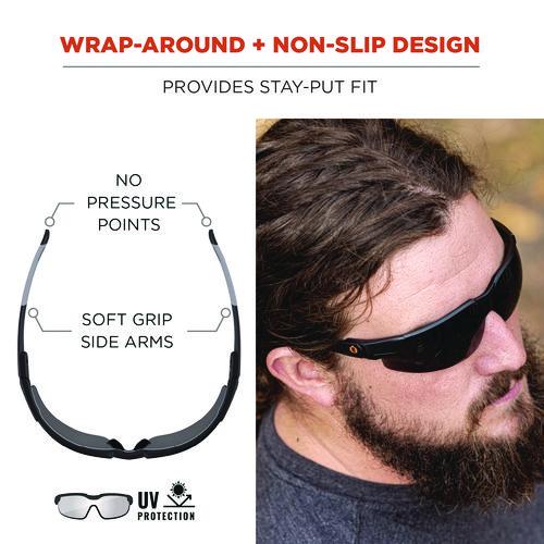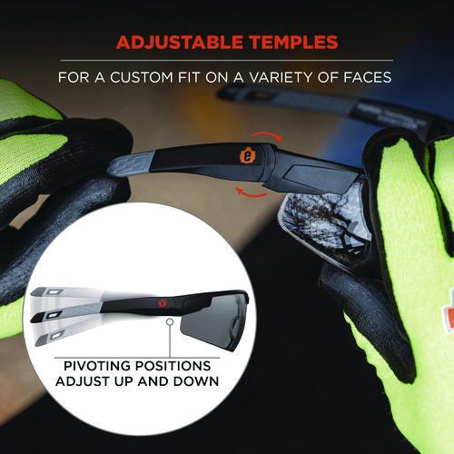 Skullerz DELLENGER Safety Glasses feature adjustable temples that shift up or down and lock into place for a custom fit on a variety of face sizes. These safety glasses feature polycarbonate lenses to protect against impacts and filter 99.9 percent of harmful UVA, UVB and UVC rays. The rimless design makes for a lightweight and comfortable fit and provides a full field of vision. The integrated, contoured nose bridge won't slip or pinch and the flex-fit temples reduce pressure and provide stay-put all-day comfort. These UV protection glasses are great for protecting your eyes during indoor and outdoor work like construction, carpentry/woodworking, demolition or landscaping. Also great for outdoor hobbies like boating, skiing and fishing.Note: This is a non-returnable item.