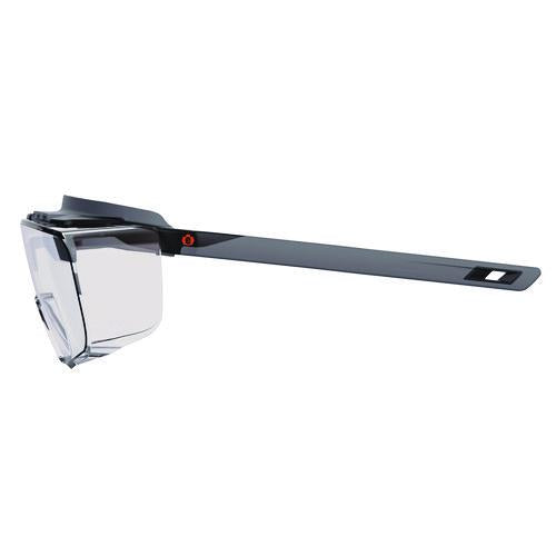 Skullerz OSMIN Anti-Scratch and Enhanced Anti-Fog Safety Glasses feature an Over-the-Glasses (OTG) wraparound lens for a wide field of vision and seamless fit over prescription frames. These safety glasses feature tough anti-scratch and anti-fog polycarbonate lenses to protect against impacts and filter 99.9 percent of harmful UVA, UVB and UVC rays. The frame features a nylon and soft rubber design for added durability and flexibility, while a molded-in brow guard and side shields provide enhanced protection from debris. Integrated brow venting enables airflow for improved anti-fog performance. To provide a custom, secure fit on a variety of faces, the rubber temples can be easily bent and re-bent. Built-in soft rubber guards on the frame and temples protect prescription frames and lenses from constant movement and harmful scratching that can occur with some over-the-glasses safety glasses.Note: This is a non-returnable item.
