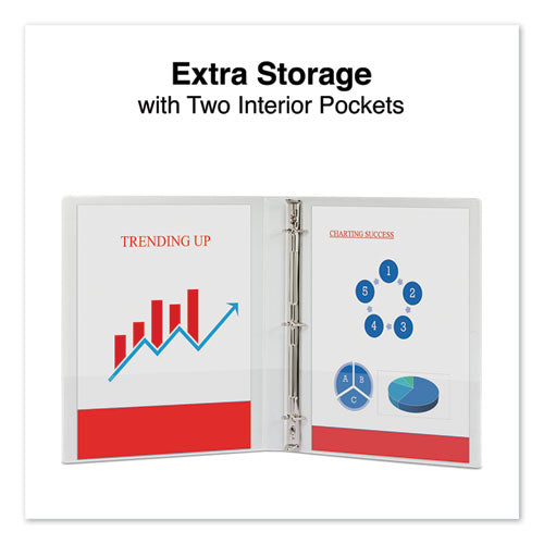 Neatly store and access your filing documents with standard view binders. Slanted D-rings allow smooth page turning and hold more documents than the same-size, round rings. Open and close triggers provide fast, nearly effortless access to single sheets. The oversized, transparent, panels provide endless customization options. The view binders cover tabbed dividers, sheet protectors, and other organization accessories. Interior includes two pockets for convenient access to single pages and reference materials. Constructed with nonstick, archival-safe material that's designed to prevent ink from being lifted off printed pages.