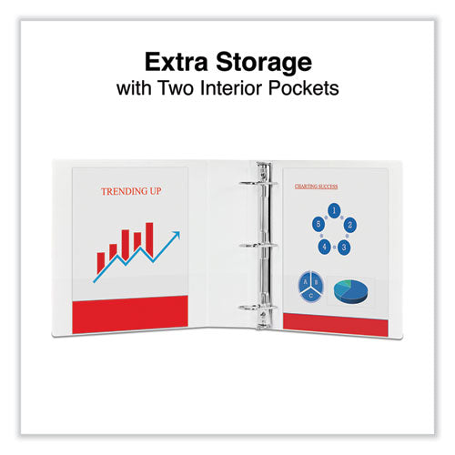 Neatly store and access your filing documents with standard view binders. Slanted D-rings allow smooth page turning and hold more documents than the same-size, round rings. Open and close triggers provide fast, nearly effortless access to single sheets. The oversized, transparent, panels provide endless customization options. The view binders cover tabbed dividers, sheet protectors, and other organization accessories. Interior includes two pockets for convenient access to single pages and reference materials. Constructed with nonstick, archival-safe material that's designed to prevent ink from being lifted off printed pages.