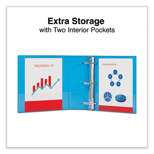 Neatly store and access your filing documents with standard view binders. Slanted D-rings allow smooth page turning and hold more documents than the same-size, round rings. Open and close triggers provide fast, nearly effortless access to single sheets. The oversized, transparent, panels provide endless customization options. The view binders cover tabbed dividers, sheet protectors, and other organization accessories. Interior includes two pockets for convenient access to single pages and reference materials. Constructed with nonstick, archival-safe material that's designed to prevent ink from being lifted off printed pages.