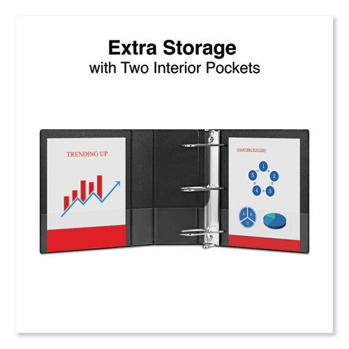 Neatly store and access your filing documents with standard view binders. Slanted D-rings allow smooth page turning and hold more documents than the same-size, round rings. Open and close triggers provide fast, nearly effortless access to single sheets. The oversized, transparent, panels provide endless customization options. The view binders cover tabbed dividers, sheet protectors, and other organization accessories. Interior includes two pockets for convenient access to single pages and reference materials. Constructed with nonstick, archival-safe material that's designed to prevent ink from being lifted off printed pages.