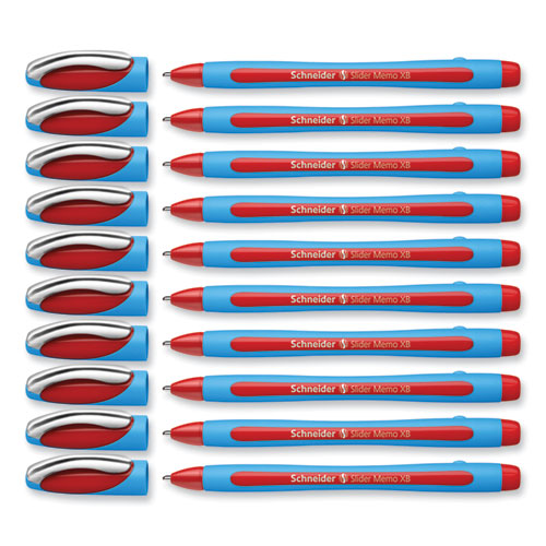 Slider Memo XB Ballpoint Pen, Stick, Extra-Bold 1.4 mm, Red Ink, Red/Light Blue Barrel, 10/Box