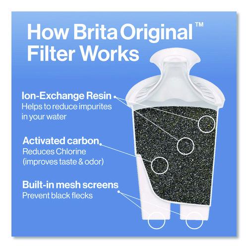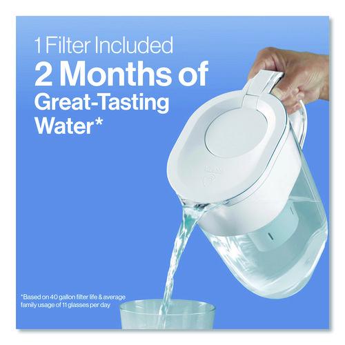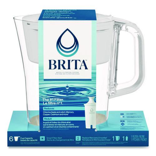 Drink great tasting water with this Brita 6-Cup Denali water pitcher, made without BPA, and the included Brita Standard filter. Brita Standard filters improve the taste and odor of chlorine to deliver great tasting water, and are certified to reduce copper, cadmium and mercury impurities. The pitcher's flip lid makes refilling a breeze, while the SmartLight indicator lets you know when it's time to change the filter. Standard Filters last about two months, and this water pitcher is also compatible with Brita Elite Filters. Great for commercial facilities like small businesses and offices, lobby areas, guest rooms, gyms and fitness centers, staff facilities, cafeterias, restaurants or classrooms.