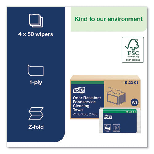 Small Pack Foodservice Cloth, 1-Ply, 11.75 x 14.75, Unscented, White/Red Stripe, 50/Poly Pack, 4 Packs/Carton