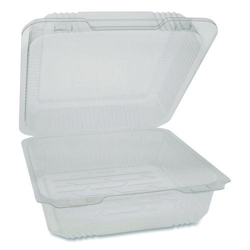 Enhance your packaging with the clarity and distinction of PET bakery containers. Our packaging effortlessly combines style and functionality to meet all your food packaging needs effectively. Made from strong PET material with a wide temperature resilience range (-20°F to 120°F) enables placement in freezers and heated display cases. Crystal clear packaging to optimize merchandising of baked goods. Great for merchandising bakery items, cheeses, produce, sandwiches, and more. SmartLock® system features a tight, audible click closure that helps ensure maximum food freshness. Smooth front panel makes sticker-labeling easy. Strong, rib-reinforced sides and back accommodate heavy items and provide enhanced crush resistance. Break-resistant hinge is flexible enough for easy closure and reliable enough for repeated openings and closings.