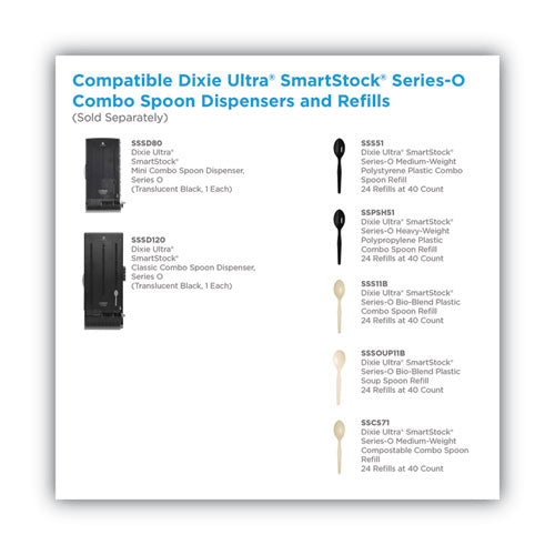 SmartStock Dining Utensil Dispenser, Holds 120 Spoons, 10 x 8.75 x 24.75, Translucent Black