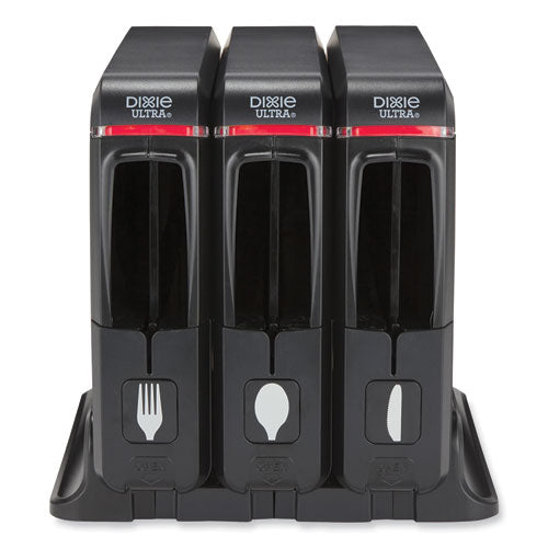 The Dixie Ultra® SmartStock® Series-W Wrapped Cutlery Dispenser offers an innovative take on wrapped cutlery. This trio of modular plastic utensil dispensers helps reduce cost, increase food safety and increase efficiency. Wrapped only at the critical end, the cutlery uses 60% less wrap than fully wrapped cutlery, reducing waste and cross contamination. You can also upgrade your image with a custom dispenser skin to showcase your brand message. The 3-part SmartStock® cutlery dispenser system includes fork, spoon and knife dispensers. Refill with Dixie Ultra® SmartStock® Series-W Heavy-Weight Polypropylene Plastic Wrapped refills.