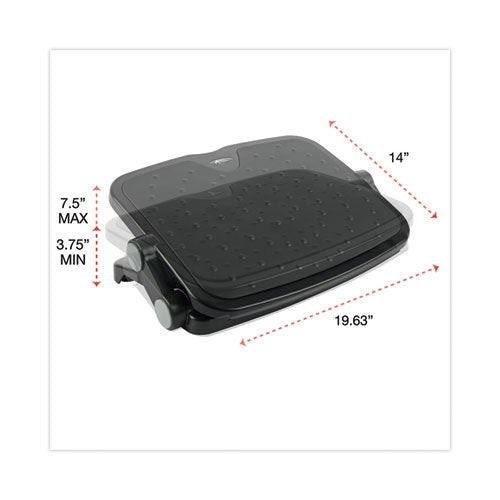 Provides precise ergonomic foot support by propping up the feet for any seated user. Comfortable cushioned footrest helps to reduce strain on the feet and pressure from sitting for long periods of time. Non-slip and anti-fatigue cushioned mat provides maximum comfort. Clever foot adjustable tilt mechanism. Two tilt positions at 20 and 40 degrees as well as two height-adjustable positions. Non-slip, non-scratching floor pads keep your footrest in place on the floor.