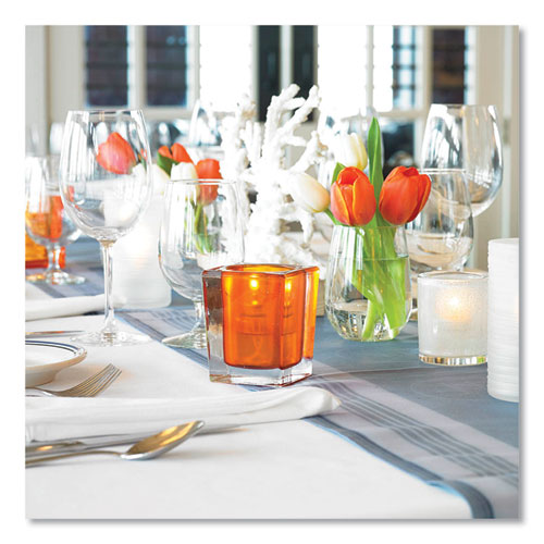 Low maintenance and unscented. A great choice for food service. Clean burning and refined formula. Provides a real flame ambiance without the time-consuming cleanup associated with standard wax candles.