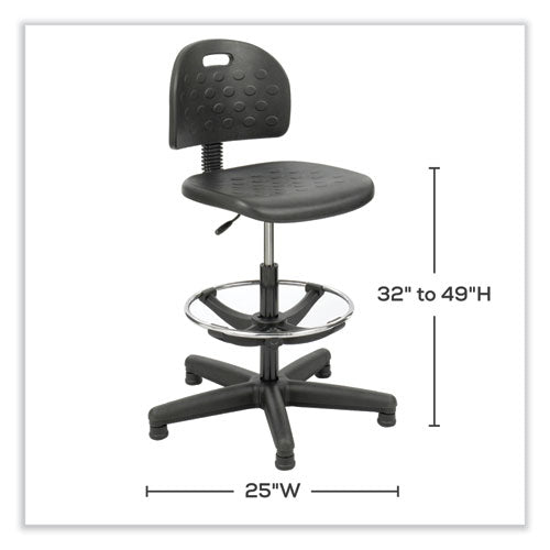 The Soft Tough™ Economy Workbench Chair is an adjustable-height chair with 10" height range adjustment. The polyurethane stool features a durable seat and back, perfect for industrial or lab settings. Optional 2" carpet or hard floor casters (sold separately).Note: This is a non-returnable item.