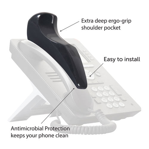 Fits either shoulder, keeps hands free. Infused with antimicrobial product protection. Self-adhesive back for mounting. Comfortable, cushiony, nonslip plastic. For regular, Trimline™ or Panasonic® phones.