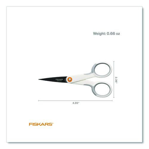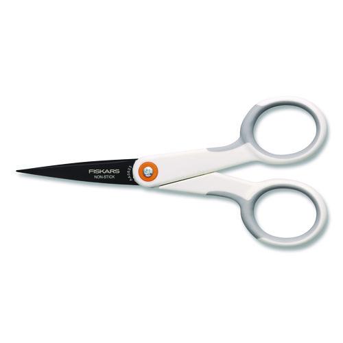Fiskars® SoftGrip® Nonstick Scissors help to elevate your creativity by providing unique design and blade coating for intricate cuts on sticky materials. Micro-Tip® blades provide superior accuracy. Nonstick blade coating makes clean cuts through materials that tend to gum up like tape, vinyl, stickers and glue. High-grade stainless steel blades are precision-ground to cut all the way to the tip. Double-loop SoftGrip® handle provides excellent comfort and control for right- and left-handed users.
