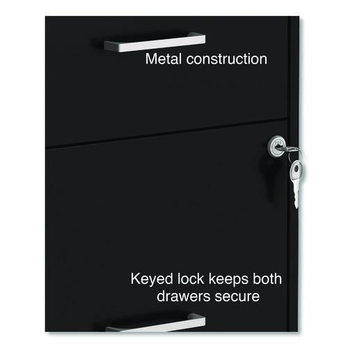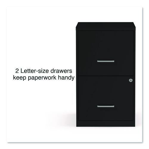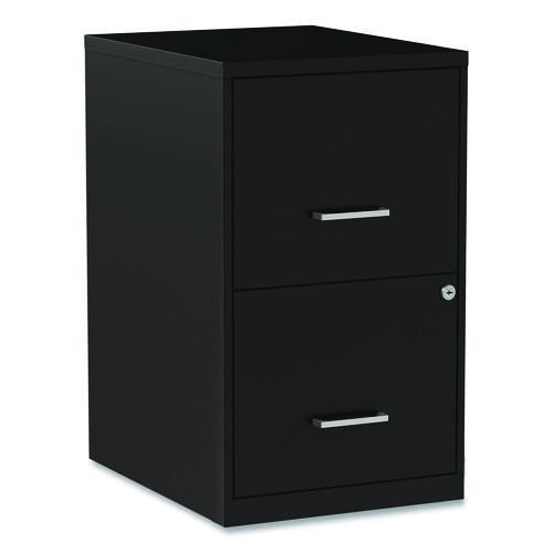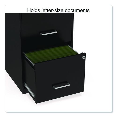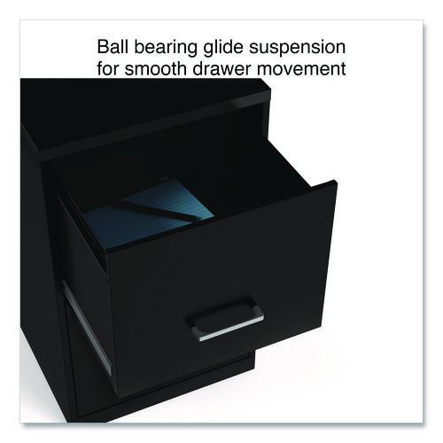 Organize your home or professional workspace with the 2-Drawer vertical file cabinet. Keep all your letter-sized documents secure and tucked away in two 18" depth drawers. This file cabinet comes equipped with one factory installed lock and key, controlling both drawers for peace of mind and security. The sleek finish and polished handles keep your office space looking contemporary and organized.