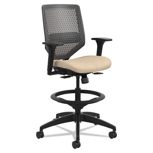 Solve Series ReActiv Back Task Stool, Supports Up to 300 lb, 23" to 33" Seat Height, Putty Seat, Charcoal Back, Black Base