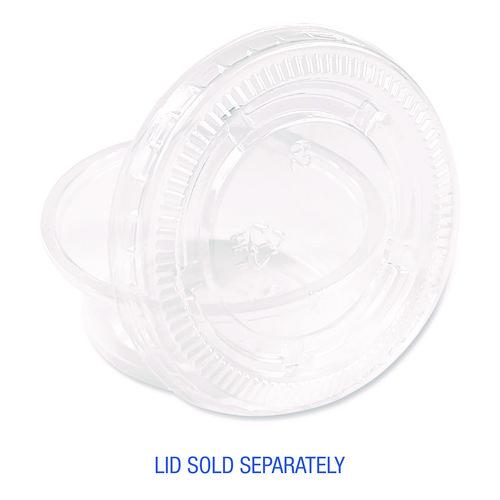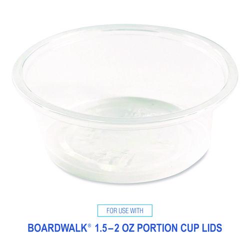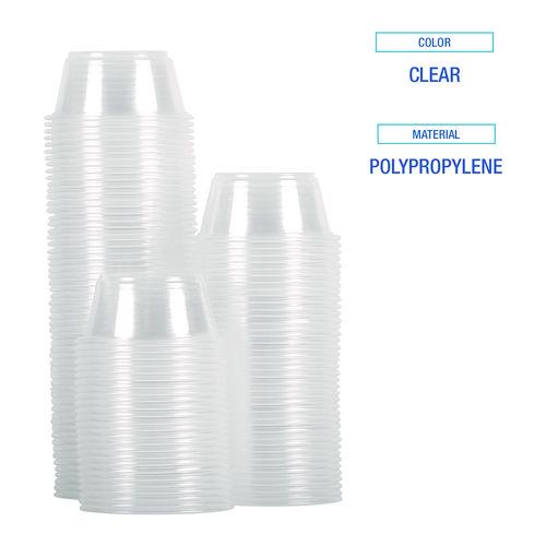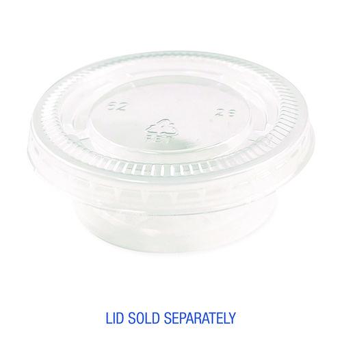 The perfect, small size, portion control cup that's ideal for dressings, sauces, sides, and toppings. These sturdy, high-quality cups are great for samples, condiments, and smaller food items. The substantial lip snugly fits with a Boardwalk® lid (sold separately) to keep liquid or solid contents inside when packing meals to-go. High-quality polypropylene design provides great strength and stability, allowing for convenient stacking and storage.