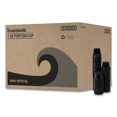 Souffle/Portion Cups, 1 oz, Plastic, Black, 125/Sleeve, 20 Sleeves/Carton