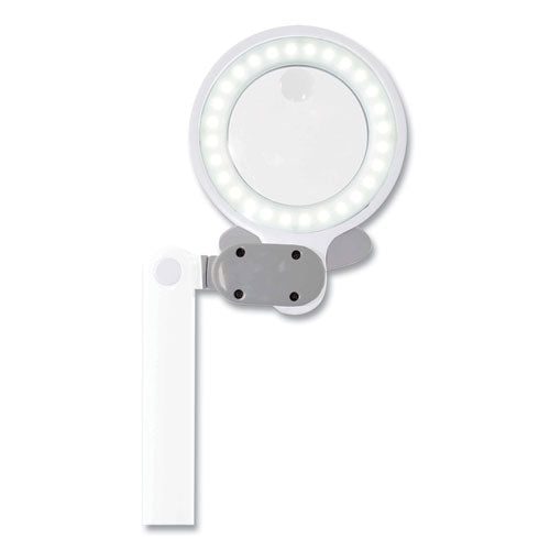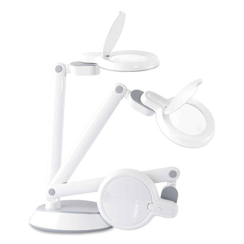 The OttLite Space-Saving LED Magnifier Desk Lamp is a lamp and magnifier all in one. With an articulating arm and pivoting head with four points of adjustment, you'll be able to position the super bright LEDs anywhere you need. A 3-inch, 1.75x optical-grade magnifier helps you see intricate details with ease. There's a flip cover on the magnifier to protect the lens when not in use and the lamp easily folds for compact storage. With OttLite Natural Daylight LED Illumination, you can see details clearly and reduce glare and eyestrain so you can do what you love, longer.Note: This is a non-returnable item.