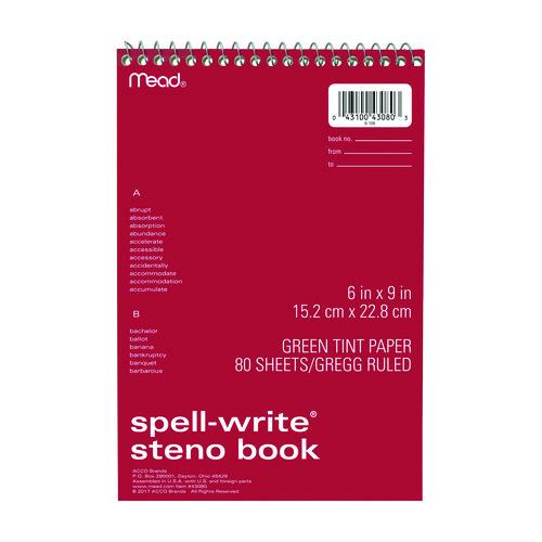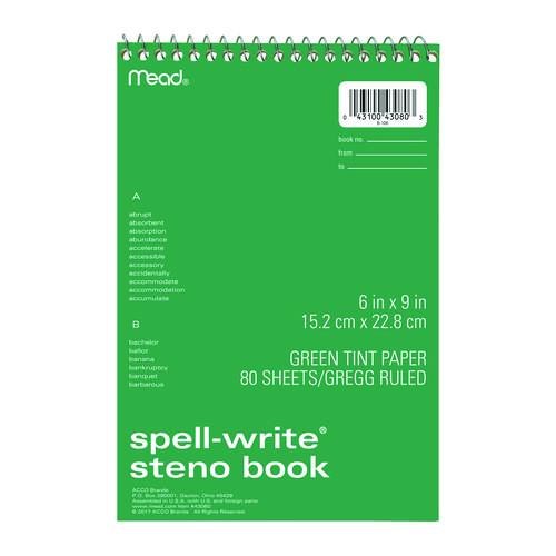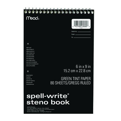 Take perfect notes with this steno book. Includes gregg ruled sheets and features a listing of commonly misspelled words to check spelling as you work. 80 double-sided sheets for a total of 160 gregg ruled pages. Pages are perforated for clean and easy removal. Steno book is topbound for quick page turning. Wirebound design keeps all sheets in tact. 6" x 9" page size with cardboard cover.
