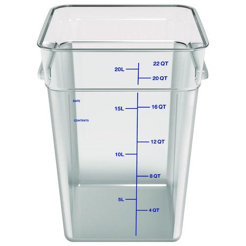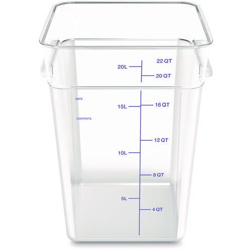 Maximize storage space for a variety of items in Carlisle Squares food storage containers! Tight fitting, color-coded lids (sold separately) encourage organization and reduce cross-contamination. Color-coded liter and quart markings match color-coded lids to ensure a quick and easy match. Keep food organized and separated for sanitary storage.