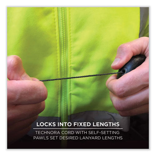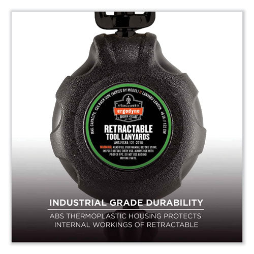 The patented Squids 3000 Retractable Tool Lanyard with Carabiner Tool Tether + Carabiner Anchor features a lightweight, low-profile retractable design that limits snags, tangles and tripping hazards. Use one manual-locking stainless steel carabiner for tethering hand tools weighing up to 1 lb, so that your tool is always kept close while you work at heights. Use the other carabiner for connecting the lanyard to your climbing harness's D-rings or to some other anchor point. Swivel rings on both ends feature a full 360° rotational range to minimize ergonomics-related hassles. Fixed-length locks with self-setting pawls make it easy to set the desired lanyard length. Set your working length by pulling the ultra-strong Technora cord out to the desired length, and then slightly tug the cord upwards to lock it in place. To retract, slightly extend the Technora cord out a bit further to release the lock, allowing the cord to retract back into its industrial-grade, ABS housing. Modular connecting buckle makes it easy to quickly switch out your attached tool for any other that you have equipped with a Squids 3025 Stainless steel Carabiner Tool Tether (additional tethers sold separately). Safety lanyards are an integral part of any fall-protection plan and are used to reduce the risks associated with falling objects to ensure workplace safety. When working at-heights, it's critical to tether your tools, so do it right with Squids tool lanyards and tethers. Third-party certified to a 2:1 safety factor.Note: This is a non-returnable item.