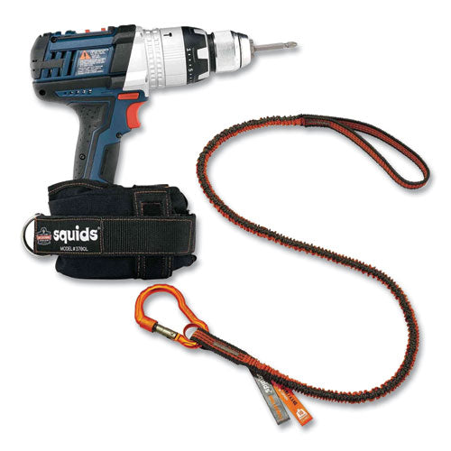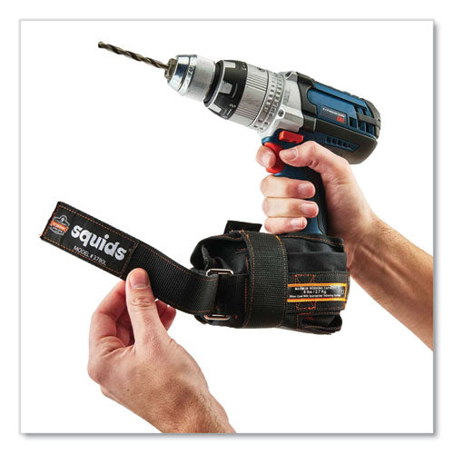 The Squids 3191 Power Tool Tethering Kit allows you to tether one standard 10 lb power tool, making it easy to use your power tools on the job while preventing dropped objects. Includes a single carabiner tool lanyard and power tool trap for tethering cordless power drills and cordless impact drivers. Connection points for tool lanyards are not always readily available on tools, which can create a hazardous environment while working at heights. Simply open up the hook and loop straps of the power tool trap and place the battery end of the power tool into the power tool trap, with the back of the battery near the D-ring of the trap. Tighten the hook-and-loop straps on the power tool trap to secure the power tool inside. See full instructions for more details.Package Includes: (1) Squids 3100F(x) Single Carabiner Tool Lanyard; (1) Squids 3780L Power Tool TrapNote: This is a non-returnable item.