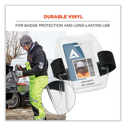The Squids 3386 Vinyl Arm Band ID/Badge Holder is designed for easy access and prevention of lost IDs and badges. An elastic band with hook and loop closure adjusts to fit a range of arm sizes. Made with a durable vinyl for protection and long-lasting use.Note: This is a non-returnable item.