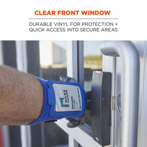 Squids 3388 Wrist ID/Badge Holder is designed for easy access and prevention of lost IDs and badges. A soft and breathable circular knit polyester material stretches to fit a range of wrist sizes, while a small pocket with zipper closure keeps small items secure. The clear window is made with durable vinyl for protection and long-lasting use. This arm band holder fits most ID badges or access cards measuring 3.75" x 2.75".Note: This is a non-returnable item.
