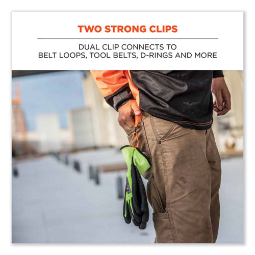 The Squids® 3420 Dual Clip Swivel Glove Clip Holder securely grabs onto your face masks, gloves, ice traction, cooling towels, keys and whatever else always seems to mysteriously disappear, so you can keep what you need at the ready. No more trying to stuff gloves in your pockets only to have one fall out and get lost. This glove holder features a patent-pending design with a swiveling link that allows it to rotate freely without getting bound up. The strong gripping jaws can hold on to gloves, hats, keys, towels and other PPE that are too bulky to fit in pockets. Ideal for those who work in construction, warehouses, manufacturing, food processing plants, janitorial and even retail environments. Keeps gloves and other gear handy for off-the-clock use, too, like hunting, hiking, home projects and more. The link design allows one end of the gear grabber to safely separate in case of emergency.Note: This is a non-returnable item.