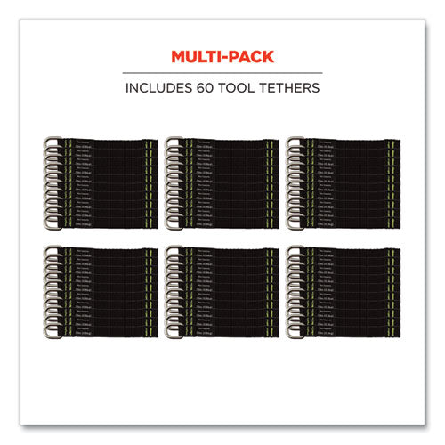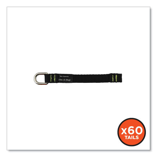 Squids 3700 Nylon Webbing Tool Tails with D-Rings, 2 lb Max Working Capacity, 5.5", Black, 6/Pack, 10 Packs/Carton