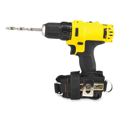 The Power Tool Trap securely wraps around the battery portion of drills, impact drivers and other cordless power tools. D-Ring connection point attaches to a lanyard to prevent drops.Note: This is a non-returnable item.