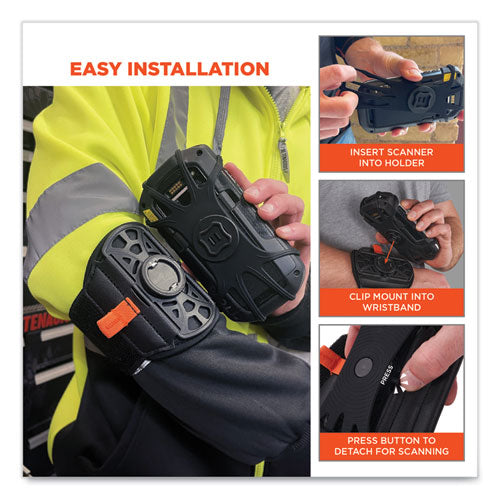 The Squids 5545 Arm and Wrist Scanner Mount prevents costly drops or misplaced devices by keeping handle-less barcode scanners, mobile computers and cell phones securely stored and conveniently accessible. Designed to be worn anywhere on a user's arm (wrist, forearm or upper arm) the scanner holder swivels 360° and offers complete access to all buttons and controls in either portrait or landscape mode. The scanner holder is built with snug and flexible elastic sides to accommodate a variety of scanner sizes. The arm band is built with high-quality elastic that is breathable and lightweight for all-day comfortable wear. An elastic accessory slot is built into the band to hold stylists, pens, pencils or small cutting tools.Note: This is a non-returnable item.