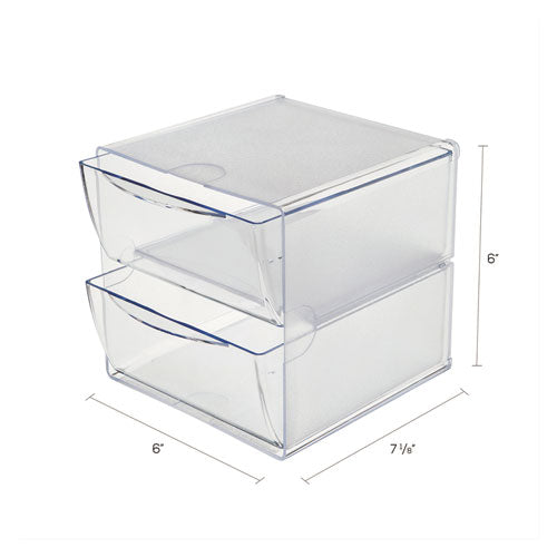 Stackable Cube Organizer, 2 Compartments, 2 Drawers, Plastic, 6 x 7.2 x 6, Clear