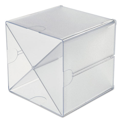 Transparent, stackable cube organizer keeps your workspace clutter-free and supplies close at hand. Ideal for storing small supplies. Drawers are clear so you can easily see what's inside, and removable so you can get what you need quickly. Modular organizers stack together with linking clips, letting you create a custom storage system. One linking clip included per cube organizer. Sturdy plastic construction.