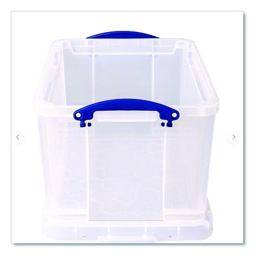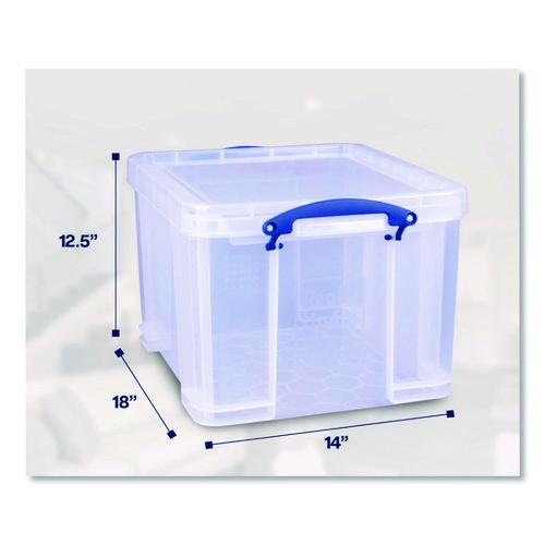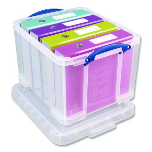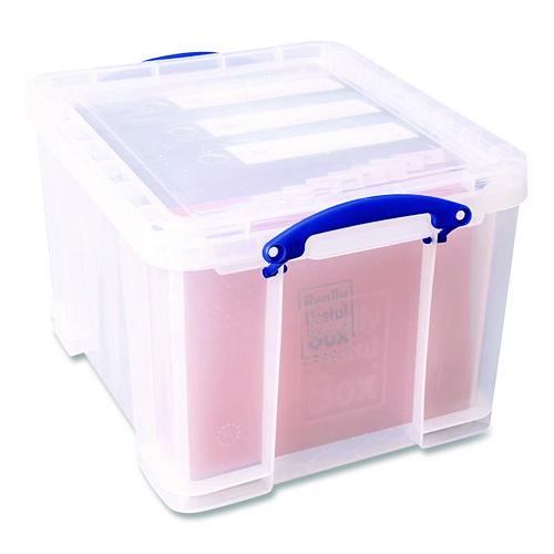 Keep documents secure and organized. The transparent body lets you easily identify your materials, while the attached handles allow for easy transport. Locking buckles ensure the lid stays in place, keeping everything safely inside. This Really Useful Box® is ideal for efficiently storing files, inventory or office essentials.