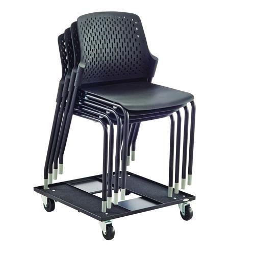 Make chair transport and storage effortless with our heavy-duty steel dolly, built to handle up to seven stacking chairs (sold separately) with ease. Whether you're setting up for a conference, event, classroom or office space, this durable dolly ensures you can move and store chairs quickly and efficiently. Constructed from high-quality steel, this dolly is designed for strength and stability, ensuring reliable support for your chairs without bending or warping. The durable black powder coat finish not only enhances its professional appearance but also protects against scratches, rust and everyday wear and tear. Equipped with 3-inch smooth-rolling casters, this dolly provides effortless mobility, allowing you to transport chairs across various surfaces with minimal effort. The sturdy wheels ensure smooth navigation, whether you're maneuvering through tight spaces or rolling across carpeted and hard floors. Perfect for event venues, offices, schools, banquet halls and more, this steel chair dolly is a must-have for anyone looking to streamline chair setup and storage while saving time and effort.