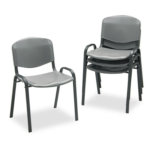 Stacking Chair, Supports Up to 250 lb, 18" Seat Height, Charcoal Seat, Charcoal Back, Black Base, 4/Carton