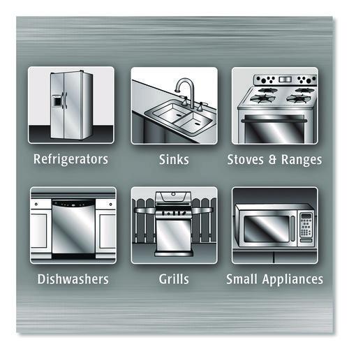 Cleanser is specially formulated for stainless steel surfaces. It is excellent for removing dirt, residue, fingerprints, water spots, and more. It provides a brilliant, streak-free shine without any hard rubbing. In addition to cleaning and polishing, it protects your stainless steel by leaving a shiny, protective barrier that resists fingerprints and repels dust and dirt. Recommended for all stainless steel, including large appliances like refrigerators, dishwashers, ovens, and stoves as well as the exteriors of smaller appliances such as microwaves, toasters and coffeemakers. Also excellent for stainless steel countertops, outdoor stainless steel kitchen elements and BBQ grills.