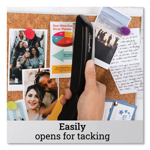 Reliable stapler is ideal for occasional stapling, tacking and pinning tasks. Featuring a classic design, the Swingline® Standard Stapler is both very comfortable and easy to use. Stapler opens fully for instant tacking ability and features a reversible anvil to create temporary pin staples - pin staples are easily removed without a staple remover. Value Pack comes complete with 5,000 standard staples and a staple remover, everything you need to get started.Package Includes: (1) Staple Remover; (5,000) Standard Staples