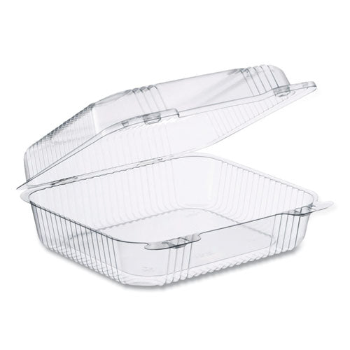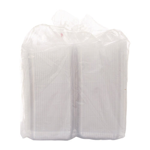 Clear hinged containers offer crystal clarity for excellent product visibility. Dual bar locks ensure a secure closure, even after multiple openings, while sidewall ribbing and chamfered corners increase strength and durability. Lightweight, crush-resistant and stackable. Serve multiple applications.