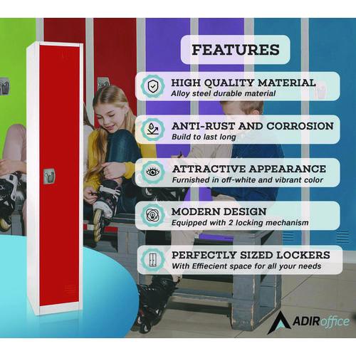 The minimalist design of our lockers makes them suitable for a wide range of spaces. Each is accompanied by coat and bag hooks which make the organization more accessible than ever, encouraging children to be responsible and independent. Additionally, the vented doors ensure proper air circulation, keeping your child's belongings fresh and dry. As a bonus, adorned on every door are metal name plates that are great for locker assignments or personalization as you see fit.Note: This is a non-returnable item.